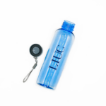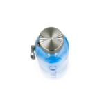Realizzata in Tritan (materiale riciclabile al 100%) di color blu trasparente con tappo in metallo, è leggera e resistente agli urti.